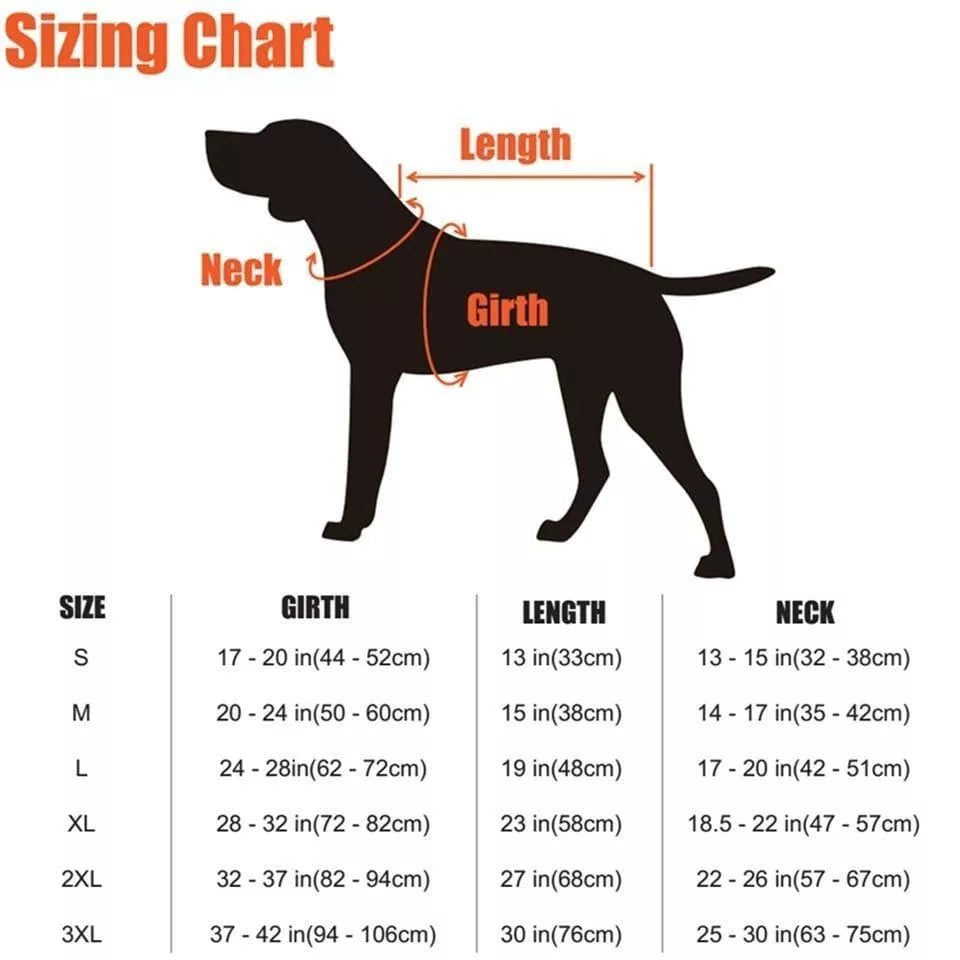 Please note: The ideal length for a coat is to fit is just short of the base of the tail. However, It is better for the length to be a few centimetres short or long than to be too tight around the chest. Remember, please see the size chart for more information.